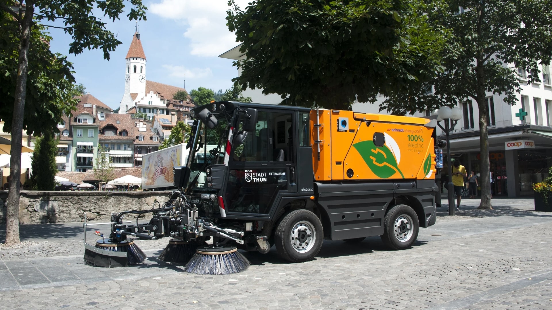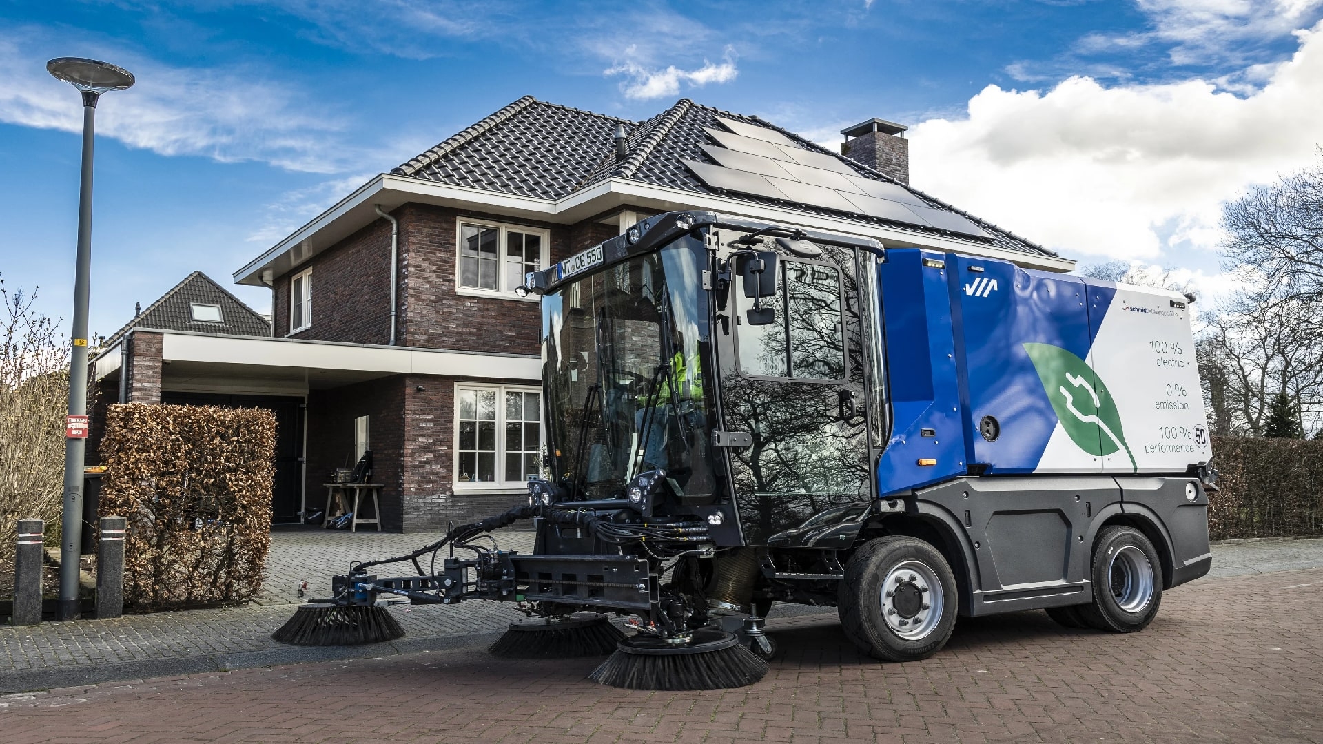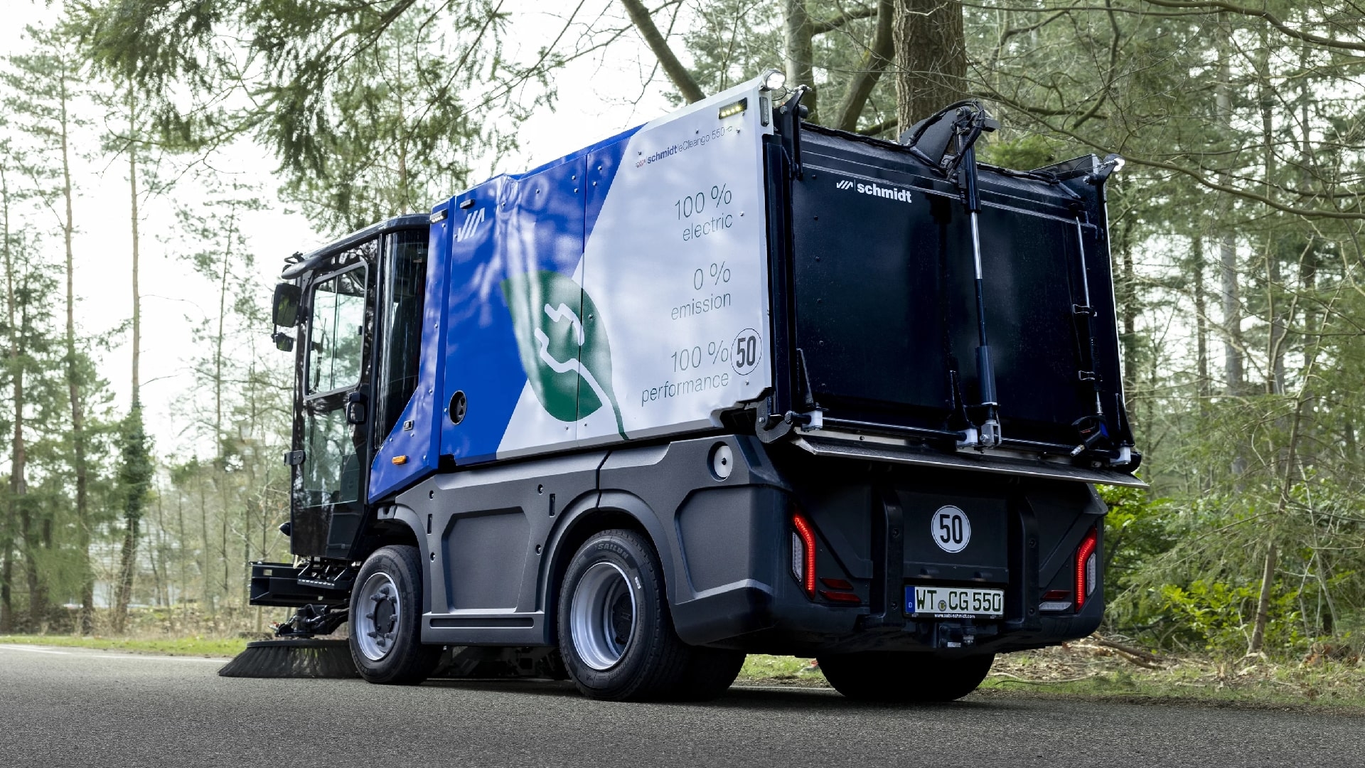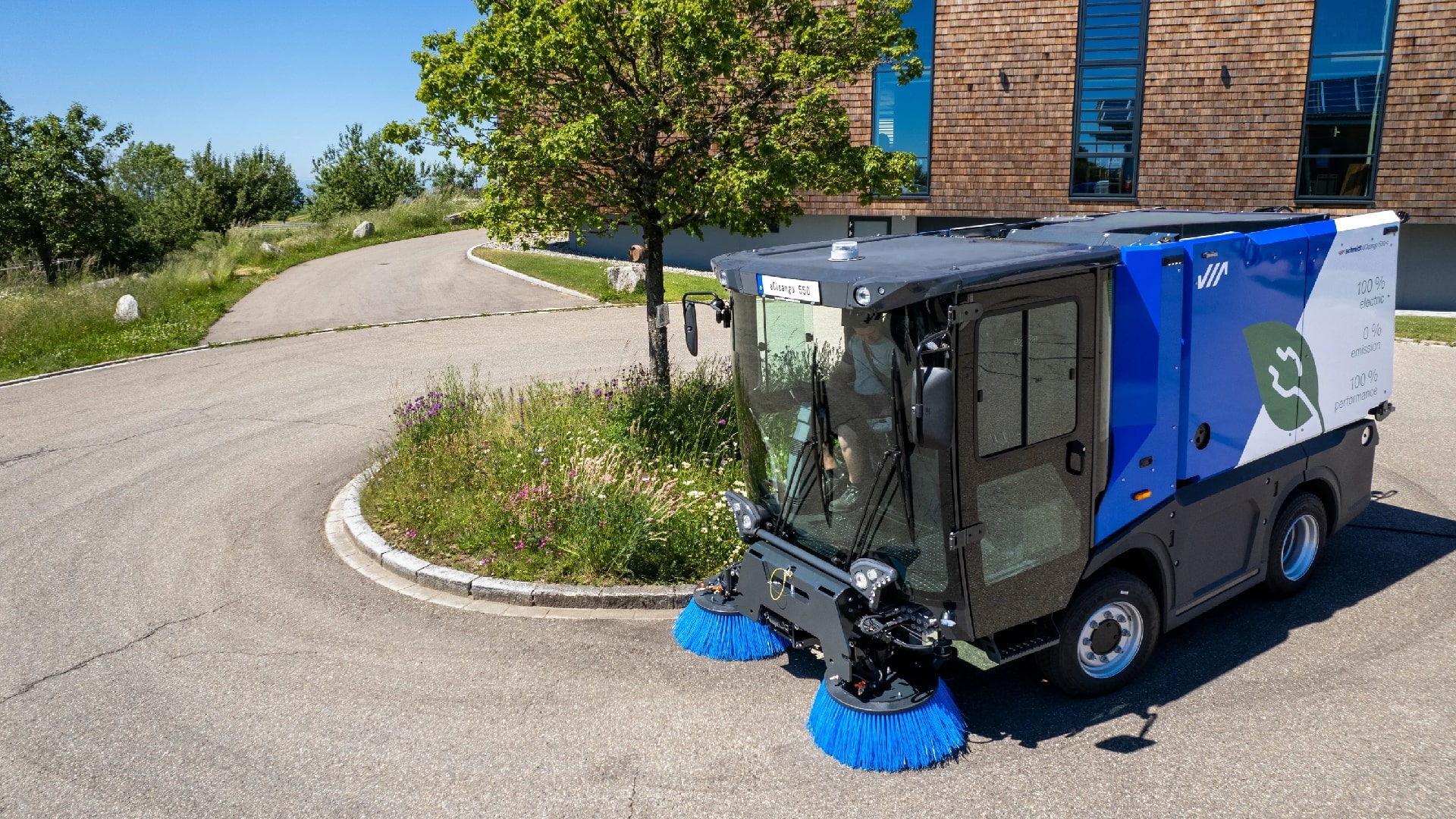 100% electric, 0% emisii de dioxid de carbon, emisii reduse de zgomot, capacitatea bateriei de 75 kWh permite un timp de lucru de pana la 10 ore fara reincarcare; reincarcarea completa este posibila in doar 4 ore cu incarcatorul de bord, disponibil cu sistem de 2 sau 3 perii cu ax de aspiratie tractat. Datorita gamei largi de module optionale, poate fi adaptat cerintelor specifice ale clientului, economiseste resurse prin recuperarea apei, putere mare de lucru si tractiune chiar si in sarcini dificile de maturare. Cabina spatioasa, vizibilitate excelenta, comenzi ergonomice, coloana de directie reglabila si scaun sofer cu suspensie, cu optiuni individuale de reglaj.